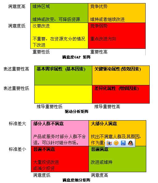 简介:随着产品的日益丰富,多数行业的竞争从单纯的产量、质量转移到高度重视客户产品满意度。而今,客户在购买或使用产品(符合)的整个过程(包括购买前、购买、使用、咨询与维修服务等环节)中的体验决定了消费者的最终的态度与行为,这也就是越来越多的卓越企业开始重视全程客户体验(Total Customer Experience,TCE)的缘故。 全面客户满意模型(TCS Model)正是基于TCE的观点,为企业提供实现TCE的数据与决策支持。 正是通过定性与定量的确定客户在各个环节的感受点,将定量调查结果通过探索性与验证性因素分析确定消费者的感受结构,从客户的角度出发,考虑到客户的全程体验,为您企业的表现提供全面的建议。 全面客户满意模型(TCS Model)可以帮助您理解顾客对产品或服务的要求和期望,衡量企业和主要竞争对手在满足顾客要求和期望上的表现,发现竞争优势和不足,确定顾客对产品或服务满意的关键因素,建立改进产品或服务的优先顺序,更有效合理地利用资源提高客户满意度,从而为您制定全面的质量管理标准。