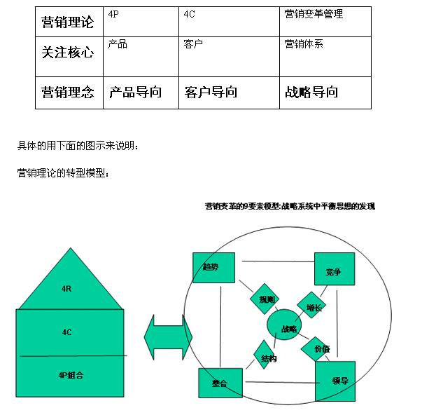 变革尺度 (Dimensions of Change)什么是战略性营销变革营销变革管理理论有一个很重要的关键词,那就是“战略性营销”,那么如何去理解这个关键词,一直在理论和实践中有很多不同的看法。 管理总是实践驱动型的,用一个好的案例去说明一些理论,特别是管理方面的理论总是会给人以轻松的感觉。 在营销变革理论中,我们首先提出了超越传统的以战略为导向的营销变革,并且从理论上对战略导向给出了很高的地位和评价。但是如何去理解这种战略性的营销变革却在我们的很多人之间显得不是很清楚,因此,有必要将战略性或者是战略导向的这个关键问题搞清楚。 在营销变革的理论中,我们用以下一个简单的图表来说明当今营销理论的变迁: