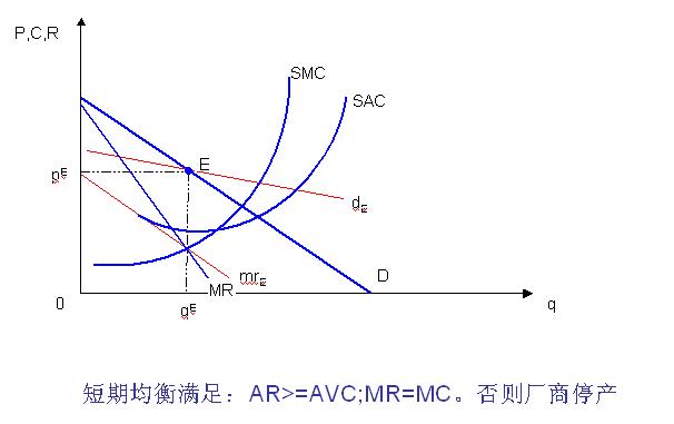 垄断竞争(monopolistic competition)垄断竞争的定义 许多厂商生产并出售相近但不同质商品的市场组织 垄断竞争市场的特征 (1)企业数量多但规模相对比较小 (2)产品相似又彼此差别----与完全竞争市场的差别所在,因而需求曲线向下倾斜 (3)企业进出不受限制 ----与完全垄断市场的差别所在,资源可以在行业间转移 (4)众多小的购买者 垄断竞争市场举例 牙膏、洗发水、成都小吃店、鞋店、加油站----产品差异来自于位置、材料、做工和品牌等方面的不同 垄断竞争下的短期均衡 (1)由于厂商可以自由进入,垄断竞争长期均衡满足:LAC=AR=P,MC=MR (2)垄断竞争的效率低于完全竞争(均衡价格高、均衡产量低),因为均衡时p≠MC,同时生产没有推进到平均成本最低点 (3)垄断竞争的效率高于完全垄断 (4)垄断竞争带来了产品差异化,更好地满足了消费者;同时有利于技术进步