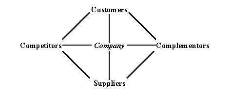 价值网(The Value Net)价值网模型的含义布兰德伯格(Brandenburger)和纳尔波夫(Nalebuff)提出的价值网(value net)管理模型解释了所有商业活动参与者之间的关系。传统公司利用供应商提供的材料生产产品并同其他生产商竞争以获得顾客。但在价值网中,布兰德伯格和纳尔波夫介绍了商业活动中一个新的因素:互补者(complementors)——“指那些提供互补性产品而不是竞争性产品和服务的公司”价值网图 价值网强调各种关系的对称因素。例如,顾客和供应商都拥有其竞争者和互补者。一家公司的顾客通常拥有其他供应商,如果其他供应商使这家公司的产品、服务或顾客价值增加,那么它就是该公司的互补者;反之,则是该公司的竞争者。同样,一家公司的供应商也拥有其他顾客,这些顾客是其竞争者或互补者。如果他们使这个供应商为最初那家公司提供的产品(或服务)更昂贵,那么他们就是竞争者;反之,则是互补者。与顾客相关的原则同样适用于供应商,而与竞争者相关的原则也适用于互补者。 客户、供应商、竞争者或互补者是一家公司扮演的多重角色,即同一家公司可以有多重身份。若要制定有效的战略,公司须理解每个角色扮演者的利益。 价值网的四个核心成分Adam Brandenburger和Barry Nalebuff提出的价值网概念,认为企业的发展进程受到以下四个核心组织成分的影响: 1. 顾客(Customers) 2. 供应商(Suppliers) 3. 竞争者(Competitors) 4. 补充者(Complements) 补充者是指那些能够提高本企业产品或服务吸引力的产品或服务, 它经常被用来描述IT企业,尽管补充者这一角色见于各个行业。 软件制造商总是希望硬件制造商(软件的使用者)不要对软件制造发生兴趣, 它们互为支持和依靠,为满足另一种产品或服务的需要展开合作。 价值网模型与迈克尔·波特的五种产业竞争力管理模型的关系迈克尔·波特的五种产业竞争力管理模型一般用来讨论一个行业内五种参予者之间的竞争,而布兰德伯格和纳尔波夫为波特的管理模型带来了第六种力量。虽然它并不比其他五种力量更重要,但也不应被忽视。 价值网和五种产业竞争力管理模型的另一个区别是,波特强调价值的分割,而价值网既强调价值的分割,也强调价值的创造。价值分割的最终结果是价值为零,谁是最终的赢家取决于参与竞争者的相对力量。价值网强调竞争和合作两个方面。公司要与客户、供应商及互补者共同合作创造出价值(即双赢的过程),同时它又要同顾客、供应商、互补者竞争以便获得价值(即赢输的较量)。这种竞争和合作的结合被称为合作竞争(co- opetition)。