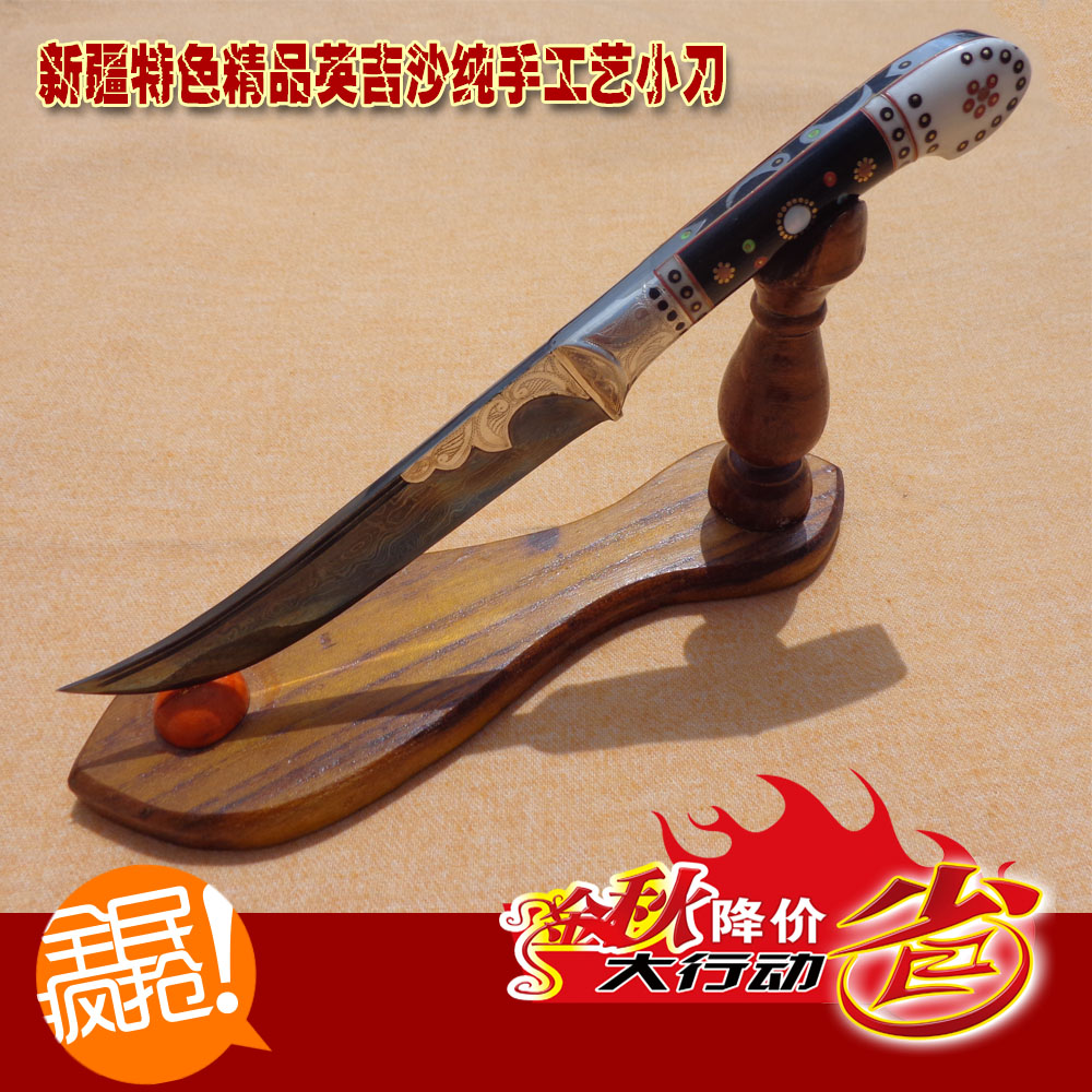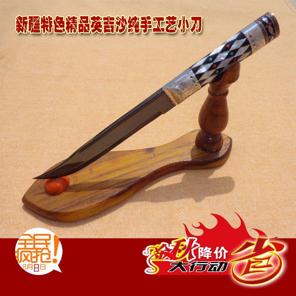新疆有四大名刀,即伊犁沙木萨克折刀、英吉沙工艺小刀、焉耆陈正套刀和莎车买买提折刀。其中,英吉沙小刀以其精美的造型、秀丽的纹饰和锋利的刃口而显露头角。它既实用又美观,是很受欢迎的民族特需工艺品。 英吉沙小刀是以原产地英吉沙县而命名的。英吉沙县位于塔里木盆地西部边缘,传统手工业相当发达,向以生产铁器、土陶、制靴、织花、织布而著称。生产这种工艺佩刀的历史约有300年左右。相传,在英吉沙城南小镇卡尔窝西,有一个毕生锻制小刀名叫买买提的艺匠,他制作的一种雕刻有直、方、圆、齿、三角形的图案、并涂有红、绿等颜色的木柄小刀,特别的锋利、美观。农家遂纷纷盘炉仿制,从而世代相传。随后艺匠们各出心裁,制作各种造型的小刀,并在刀柄上用黄铜、白银、玉料、骨石等镶嵌,并刻上富有民族特色的图案。他们相互竞争,促进了小刀质量的提高。于是英吉沙小刀的名声越来越大,制刀技艺迅速传人和田、莎车、喀什和庠车等地。 英吉沙小刀传说 英吉沙小刀的传说故事:关于英吉沙小刀的来历有两种说法,一则是相传古时候,英吉沙土地贫瘠,人民生活困苦不堪,真主安拉得知后,决定施泽于此,于是就赐一位能工巧匠打造小刀,以造福后世。此后,英吉沙慢慢富了起来,成为一座新城。英吉沙在维语中即为"新城"之意。英吉沙小刀手艺也随之流传下来了。另一则是古代英吉沙城南小镇卡尔窝西,有一位毕生锻造小刀的匠人名叫买买提,他制作的一种雕刻有红、绿、黑等颜色的木柄小刀,锋利、美观,农家纷纷盘炉仿制,从而世代相传,随后工匠们各出心裁,制作出各种造型的小刀,并在刀柄上用黄铜、白银、牛角、贝壳等镶嵌,并雕刻富有民族特色的图案。英吉沙小刀手艺从此兴盛开来。 新疆刀具的传说 相传,古代西域有个水草丰美的地方,那里的人们安居乐业,生活太平。可是后来从沙漠里来了一个能喷沙吐风的怪兽,一夜之间,美丽的家园变成了寸草不生的荒漠。为了夺回家园,人们与怪兽展开了激烈的搏斗,然而怪兽非常凶猛,许多人丢掉了性命。后来,有人发现怪兽害怕耀眼的闪光,于是人们就想出个办法来,把珍珠宝石镶嵌在最锋利的匕首上,借助珠宝眩目的光芒,终于将怪兽杀死,人们又回到了从前的家园。从此以后,那里的人们就更加珍爱刀具了,这个美丽的传说也流传至今。虽然传说无从考证,但精美的刀具确已成了维吾尔族人生活中不可或缺的部分。 英吉沙小刀的分类 铜类:由白铜、黄铜,搭配胶木、枣木、牛角、牦牛角、牛骨、工艺宝石。刀身使用特种不锈钢手工精制而成。角类:由骨、角配合工艺宝石,贝壳等物制成刀柄,刀身用特种不锈钢手工精制而成。玉类:由纯正的和田玉加纯度为%99的银制成刀柄,刀身用特种不锈钢手工精制而成。银类:由纯度为%99的银加牛角、牛骨、牦牛角、白铜、黄铜等装饰制成刀柄。刀身用特种不锈钢手工精制而成。 怎样识别名牌英吉沙小刀呢 一是要看小刀的做工是否精细。凡名牌小刀,一般选用优质弹簧钢板锻打成型,制成粗坯和细坯之后,用各种粗、细、扁、圆的锉刀锉平磨光,然后再行淬火。淬火是艺匠们世袭相传的诀窍技术,一般都互相保密,绝少外传。经老师傅淬火处理过的英吉沙小刀,钢口锋利非凡,用它来削刮铁条,只见铁屑迎刃而起,而刀锋却未见崩口和卷刃。如果你用手指弹动刀体,马上贴耳,可以听到它那清脆悦耳的音响,延续达半分钟之久。其二,要看小刀的造型。英吉沙小刀的传统造型,为人们所公认者有弯式、直式、箭式、鸽式等12个品种,30多个花色。其中又以民族欣赏习惯的不同,分制有维吾尔、哈萨克、蒙古、汉、藏等不同形式。每个花色大约都有大、中、小三个不同规格。维吾尔族人所喜爱的是一种刀体上尖后倾、刀柄下端前倾而呈S形的弯刀,它通常被认为是英吉沙小刀的典型。其三,要看小刀的装饰型刀柄。所有不同造型的小刀的刀柄,均使用各种铜、银、玉、骨、宝石等拼花铆钉,组合成各种晶莹俏丽、两侧对称的图案。最珍贵的当然要算用纯银和宝石镶嵌装饰的刀柄了。 英吉沙小刀的佩戴 新疆少数民族多是游牧民族,且"尚武",以佩戴好刀为显示男子气概的标志。男子佩戴一把好刀会引起别人的羡慕。在以前,佩戴小刀主要用于生产,现在英吉沙小刀除了实用以外,还成为一种精美的装饰品,拜访家中或亲朋好友,都不失其引人之处。 |