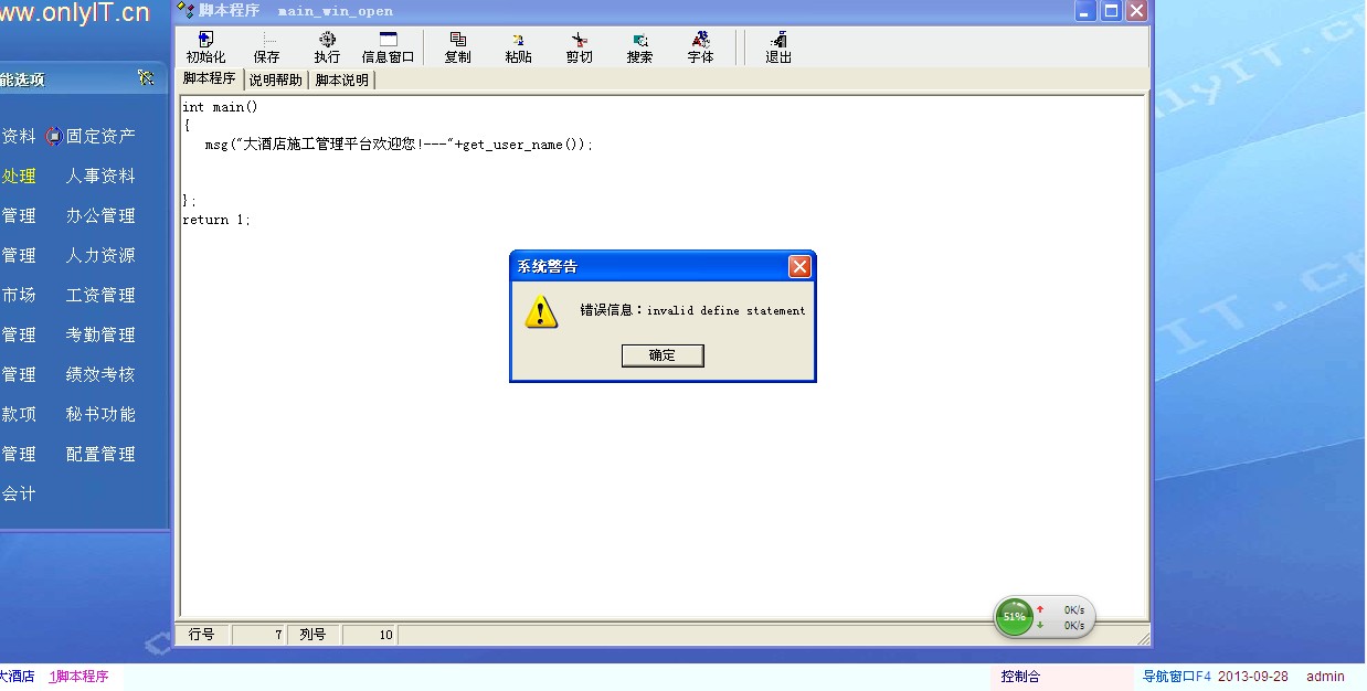 系统功能=》主窗口脚本定义    把上面代码复制过去,把公司名字改成你们自己的公司名字就可以了!