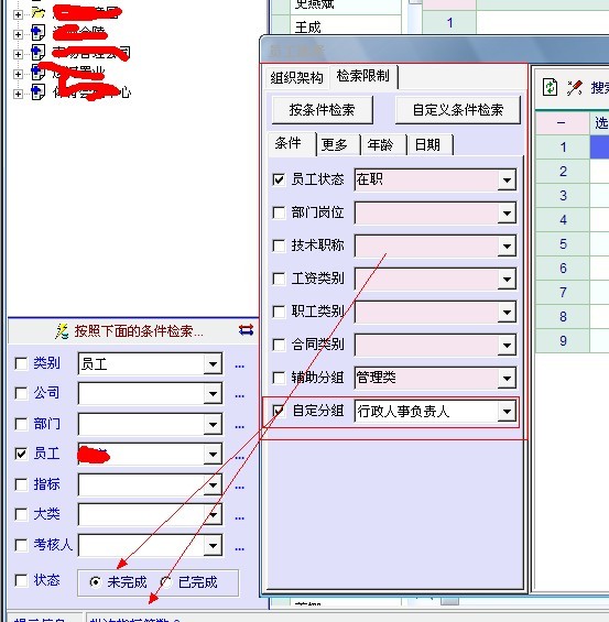 绩效考核中,员工考核界面增加员工自定义分组查询功能