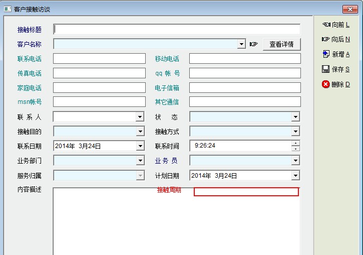 建议在客户接触周期中增加接触周期选项,这样有助于业务员定期联系不同的客户。