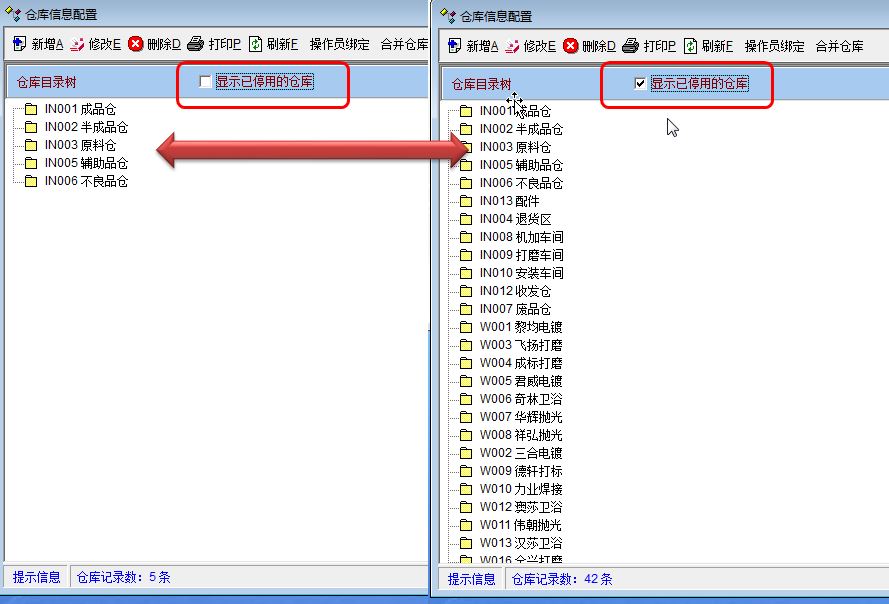库存清单中设置不显示已经停用仓库选项