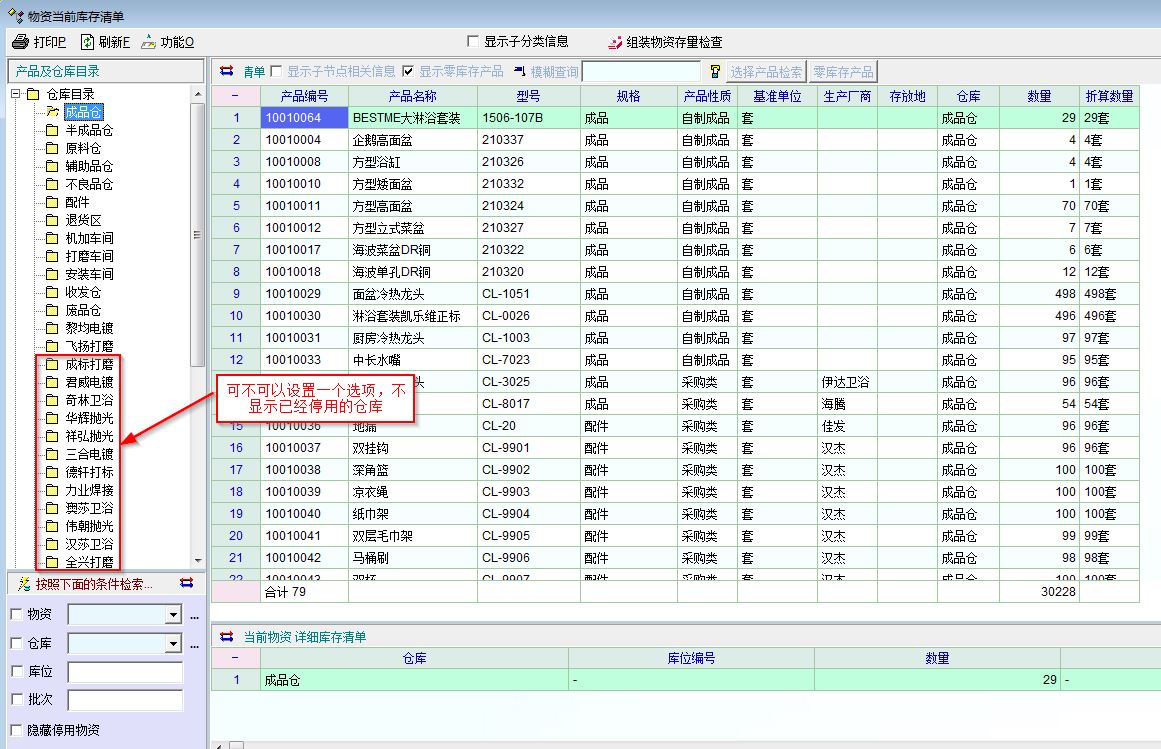 讨论_库存清单中设置不显示已经停用仓库选项_使用经验