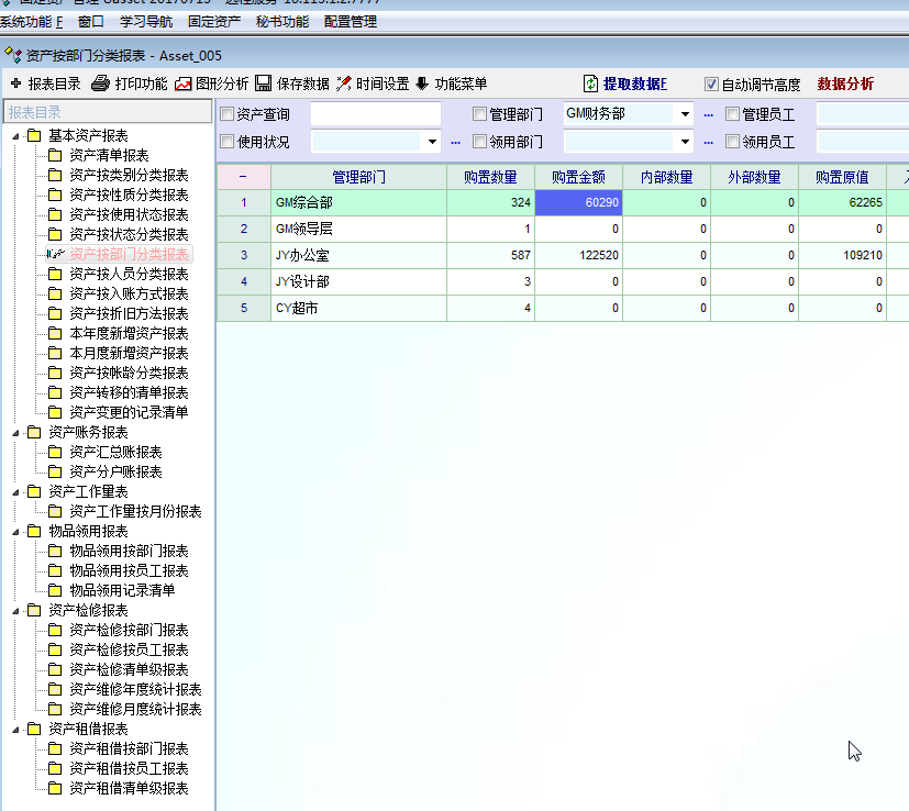大家好,想咨询一下大家,如何在固定资产软件里按指定条件出报表,例如按领用部门、领用人员等,谢谢指教。