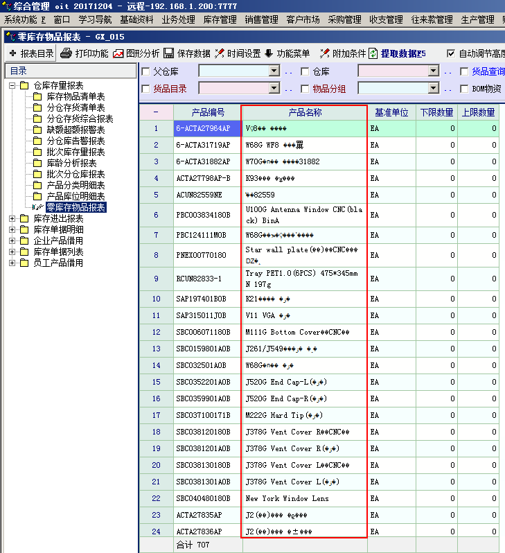 库存管理里面的 库存报表 中 产品名称 显示有乱码