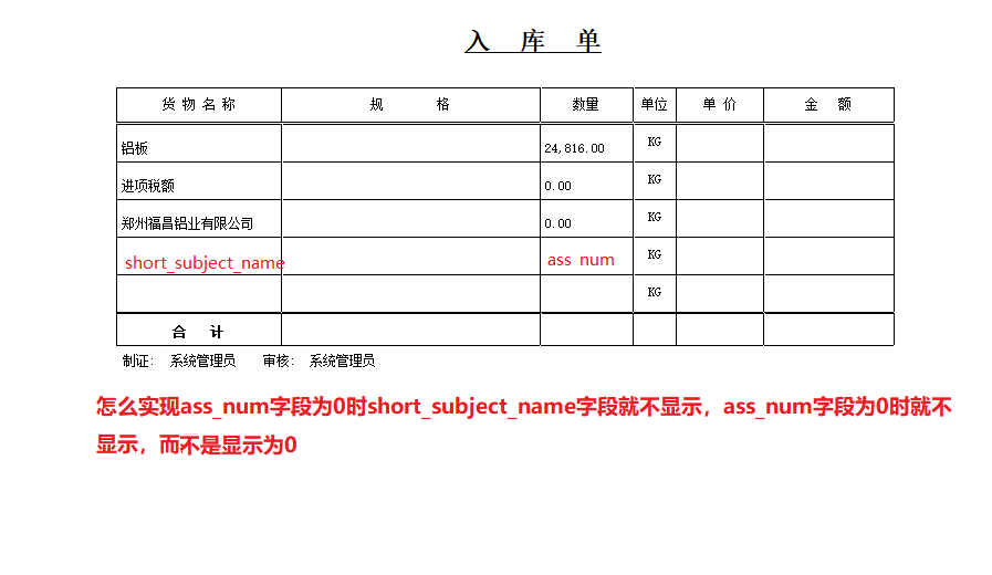 是0的  左边的货物名称不用打印了