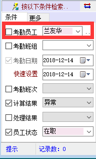 老师还有一个小问题,考勤台账明细管理里面,条件检索下面---考勤员工选择后,前面不会自动勾选,