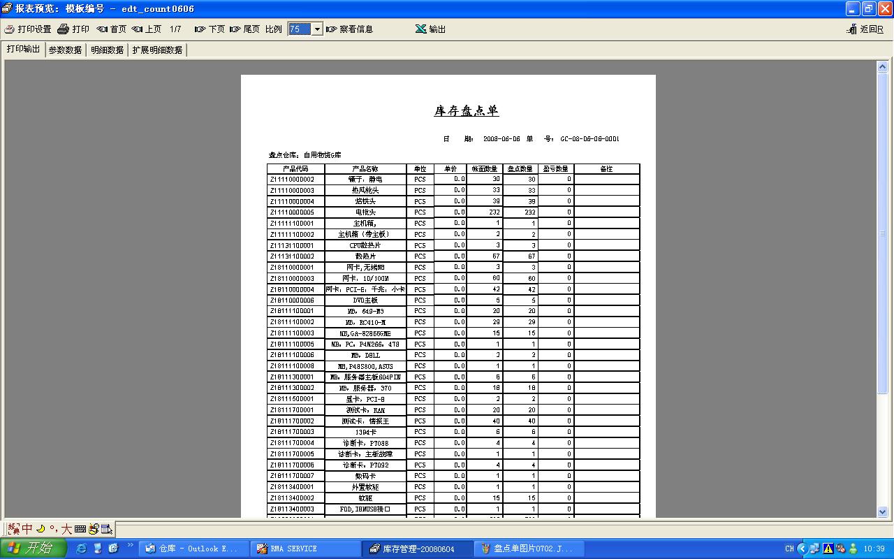 图片二为盘点单的打印预览图片,却多了单价一栏