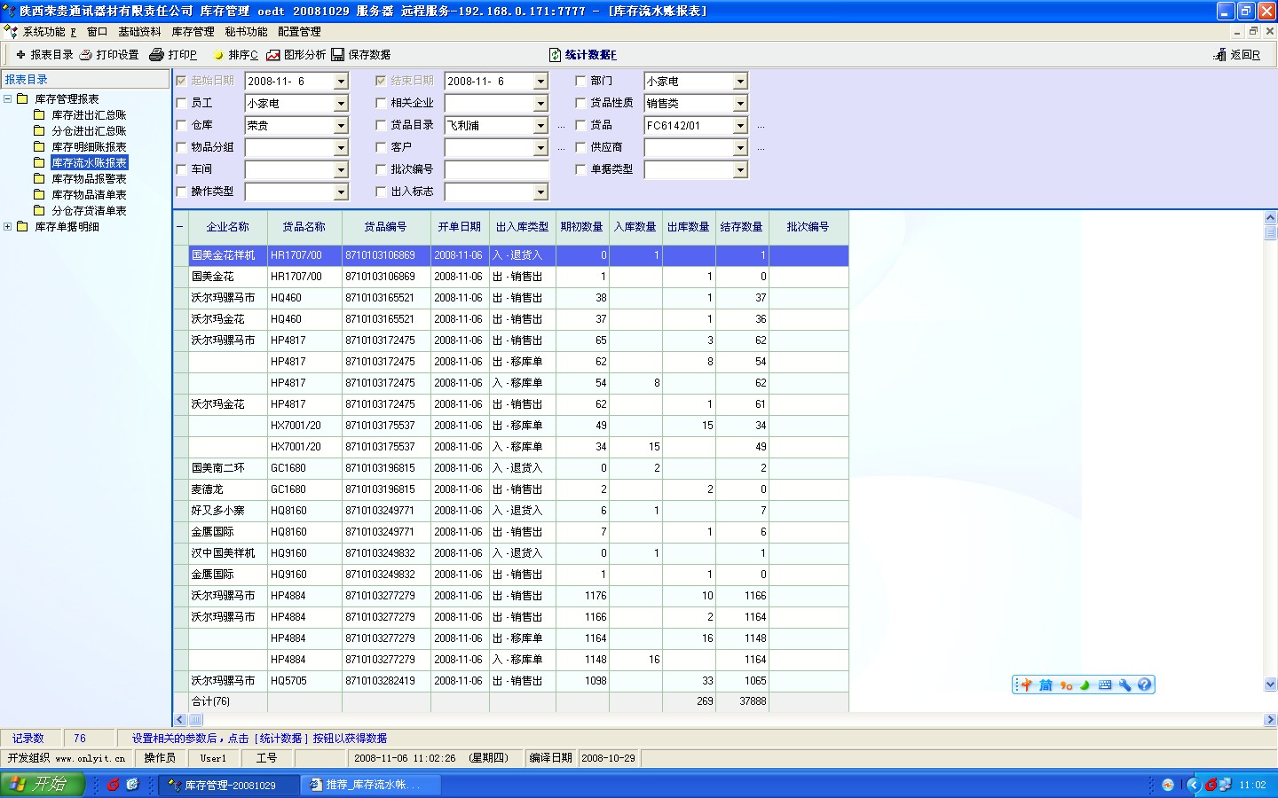 库存流水帐报表的进货列没有数量合计,出货列有,望改进!