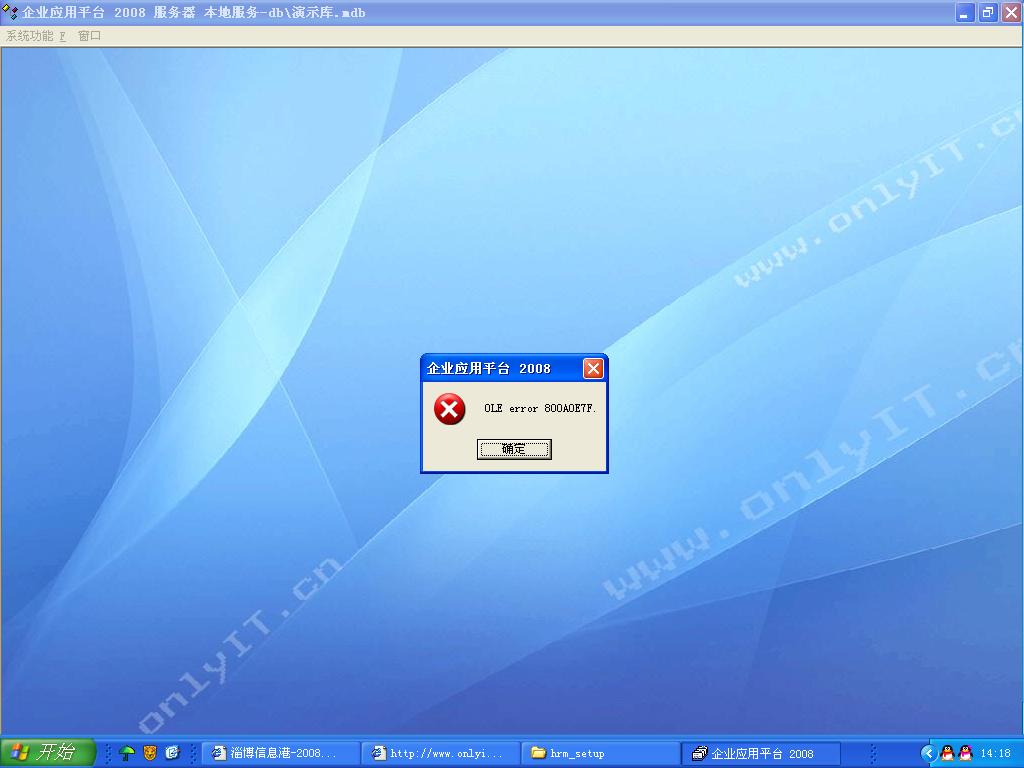 本来我用的人力资源管理软件没事的,可突然就不行了,请见附图,急死我了,快帮帮小弟吧!先谢谢了!
