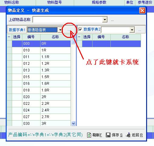 在批量定义快速生成窗口,当你选择了一个数据字典后如点隔壁的按钮,就会打开另一个窗口而且系统卡死了,按任何键都没反应了,只有按CTRL+ALT+DEL才能关闭系统再重启。 如图: