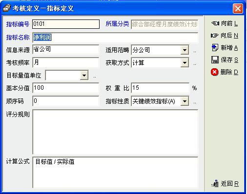 这张效绩表上的评分可以根据后面的目标值和实际值自动计算出来么?比如目标值100,实际完成80,评分自动算出80,或都套个工式什么的 还有这个指标定义下面的公式框怎么用?明明是能写的,但是没有公式生成……谁知道要怎么写啊?