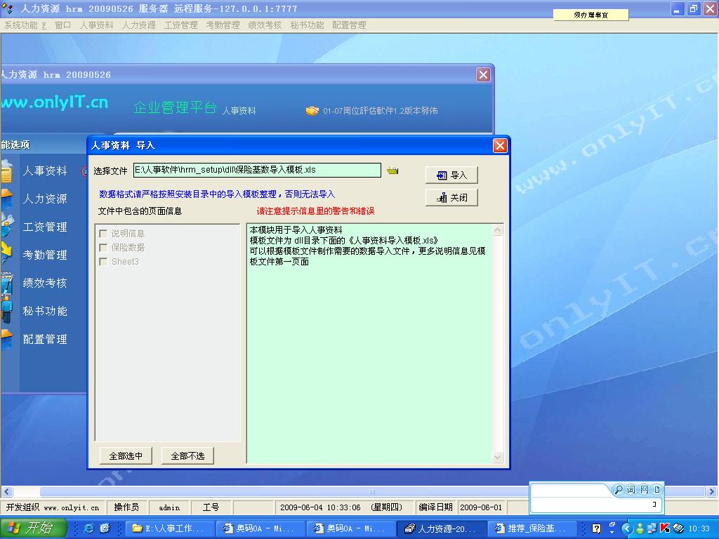 如果多次导入请选中界面中的先行删除,否则会报重复出错