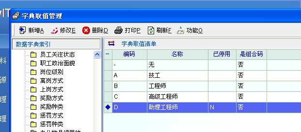 在人力资源管理软件--字典取值清单--新增取值清单里的“已停用”列中会出现“N”,如图。为什么呢?请指教。