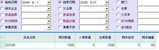 但在汇总账、流水账中库存产品为零,辅助数量也应为零,但却是-50.见附件2.