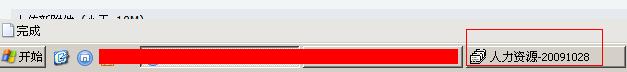 3.窗口还原最小化的问题(仅个人习惯,但应该不会太难实现)。当运行一个程序,电脑的任务栏就会出现该程序的运行条(下图),有时候需要切换其它程序的其它页面,当我单击该程序的运行条时,人事系统程序窗口还是死死的遮住显示屏而不最小化,或者是我使用习惯问题(可以说能够提高效率,也可以说本人比较懒),我知道右上角的最小化按钮能够实现,反正我很少会把鼠标移到右上角,然后单击最小化图标,一直我都是直接按一下运行条缩小,毕竟前者不习惯,很麻烦。原本我以为是程序打开多页面窗口导致,当我把页面窗口关闭剩下程序主体窗口时,依然没有办法缩小。