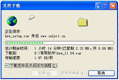 下电影倒是没有,因为这些天下人力资源软件都慢,网通?对,我们就是网通的。不过我尽量早上下载,这样快多了。幸好软件不大,十几分钟也能下完。呵呵~~~~~