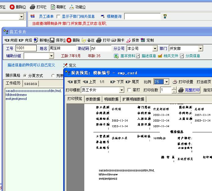 员工卡片的打印能不能重新出个模板啊,把描述信息的工作经历加上啊