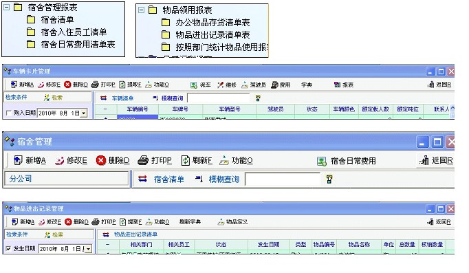 将宿舍管理的报表功能 和物品管理的报表功能 定制到宿舍管理和物品管理的界面里,如同车辆管理的一样,现在只有费用的查询,没有其他综合查询和统计,如果从报表统计里定制过来,这样使用起来更加方便,功能授权时也更好!