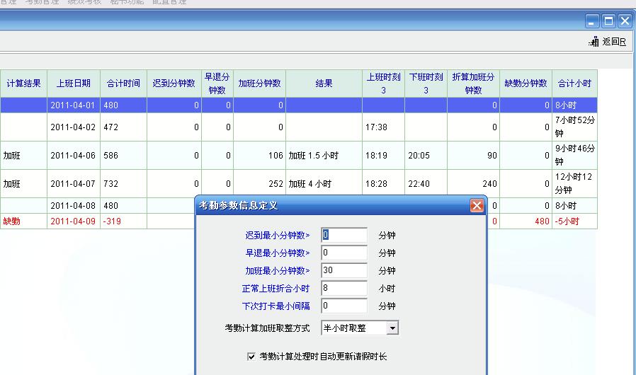 在考勤班次里面我已经设置提前和延时是否计入,选择否了。