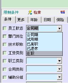 员工状态这里不小心填写了在职状态,结果现在选项里多了在职的选择项,但是实际使用时又不可以筛选。