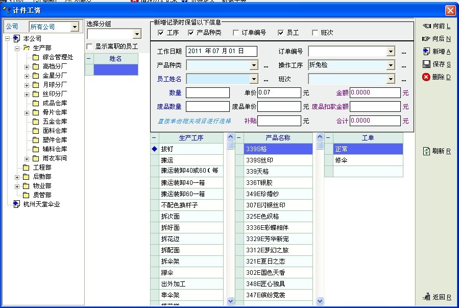 我定义了各车间的工序单价,建议在计件工资输入界面增加工序类别选项。