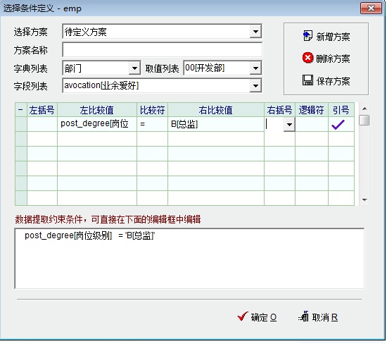员工资料=》功能=》自定义条件数据
