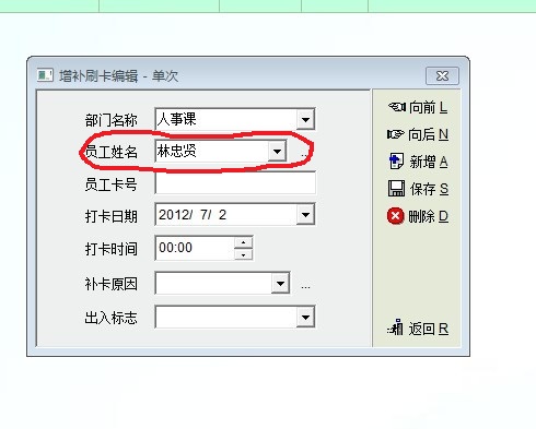 输入工号,点击回车键后,直接显示员工姓名,此功能在录入请假条的时候已经有了,是否能把这个功能增加到:打卡记录日常处理----打卡记录--新增 -员工姓名 那一栏