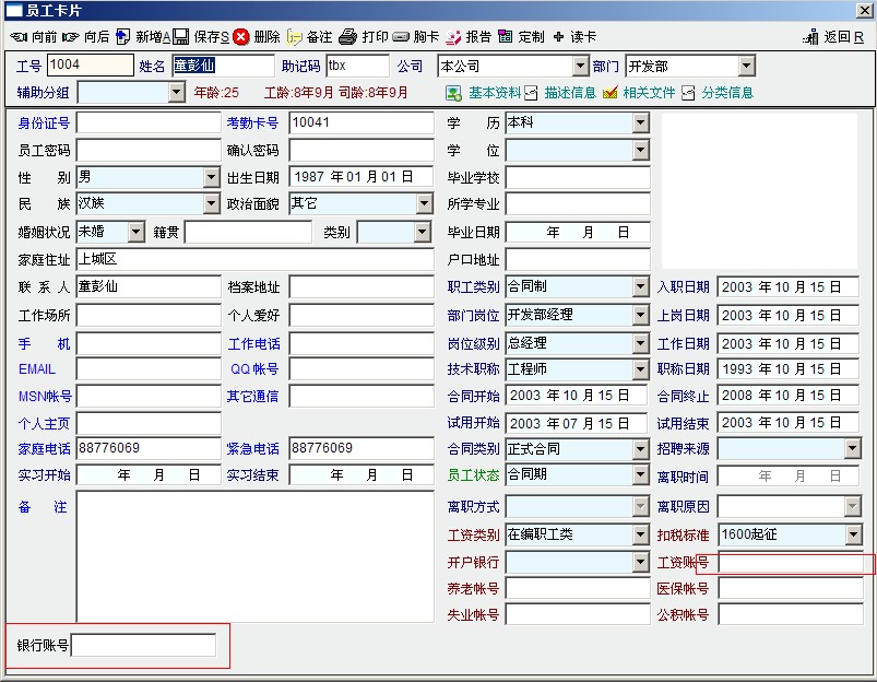 1、增加一个工资科目, 假设名字叫做 扩展帐号,类型设置为字符型(不是数值)