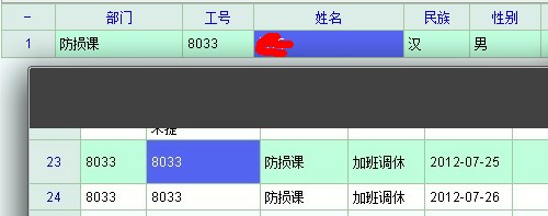 调休记录里,这里不显示名字了,但是在员工卡片里8033这个人是有名字的。其他正常的。目前是20120627版本,另外dll也升级到最新的。acc数据库多用户版,数据库和服务器在本地。系统管理员身份运行,软件里也是最高权限。
