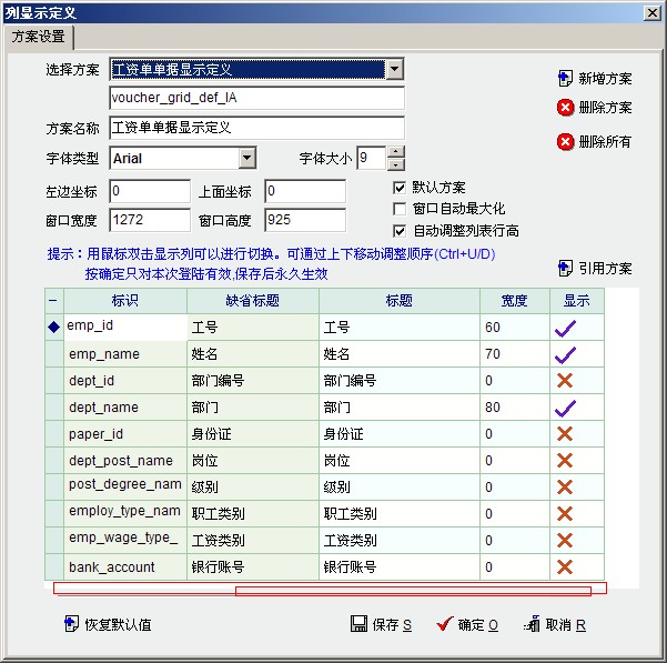 这样 员工信息中的资料 能自主显示在工资单里面。比如 有两张银行卡,工资发给工行,奖金发给建行。