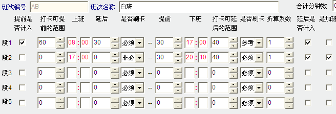 AB的段2设置上班为 17:40。