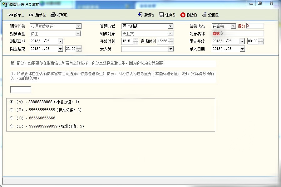 求助_关于调查问卷或试卷的分值统计的问题_人力资产