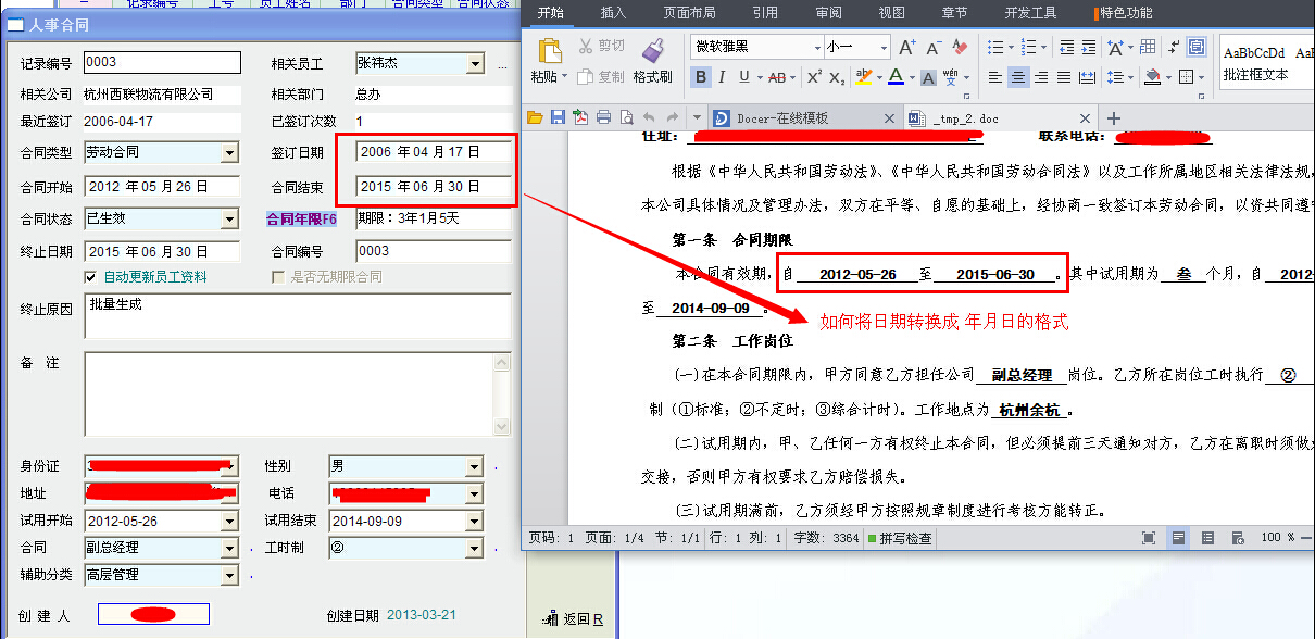 合同管理 - 生成合同时如何将日期转换成年月日类型