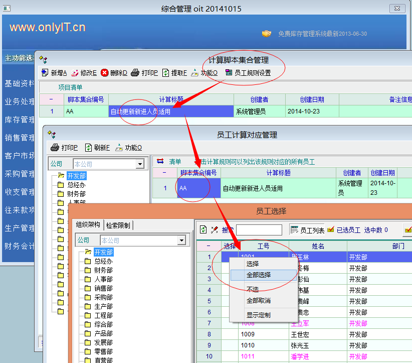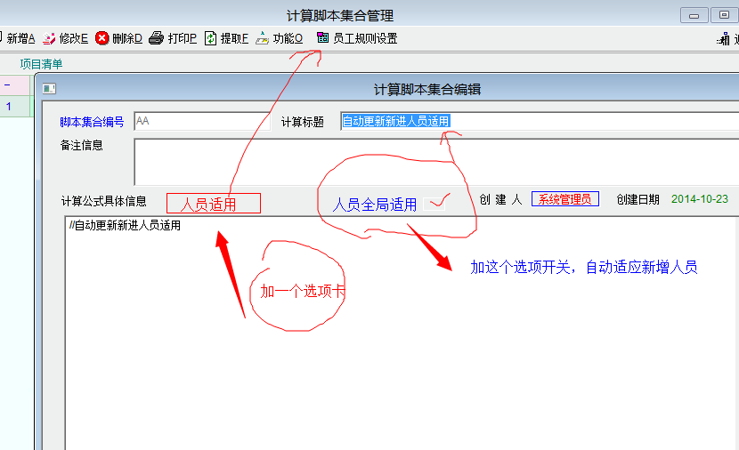 建议,在计算规则里添加一个选项,自动适用全部人员。