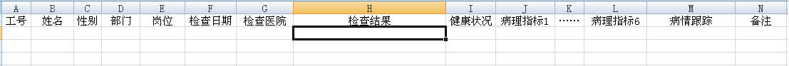 工号  姓名  性别  部门  岗位  检查日期  检查医院  检查结果  健康状况  病理指标1  ……  病理指标6  病情跟踪  备注