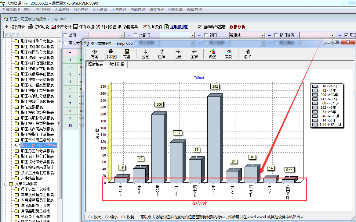 统计报表 按本公司工龄统计报表中坐标横轴没有按一定顺序排列 这个问题能否解决一下