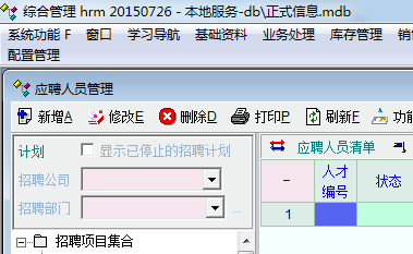 应聘人员管理中,“计划”处默认是”非选定“状态,会给检索结果带来一些”麻烦“,建议默认”选定(显示已停止的招聘计划),招聘公司默认“总公司”,招聘部门默认”所有部门“。