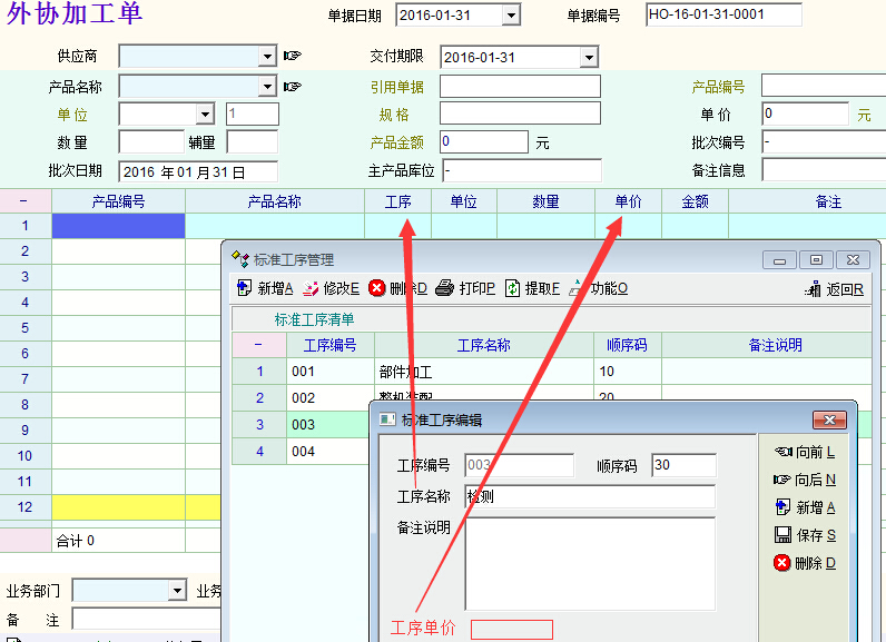系统中的外协加工单有两点完全是想不明白的:1、加工单中的单价对应的是产品的单价,而非工序的单价,这应该是脱离日常使用的实际要求的。2、加工单的明细中竟然没有工序这个内容,如何与加工联系起来呢?