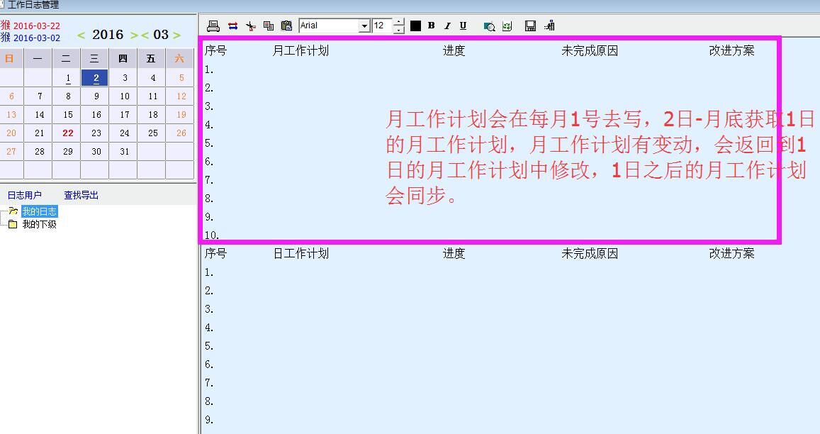日志功能相当于工作计划管理,任务管理虽然可以作为工作计划来管理,但操作过得复杂,效率反而下降,希望日志模块增加脚本扩展功能,具体功能如下附件。