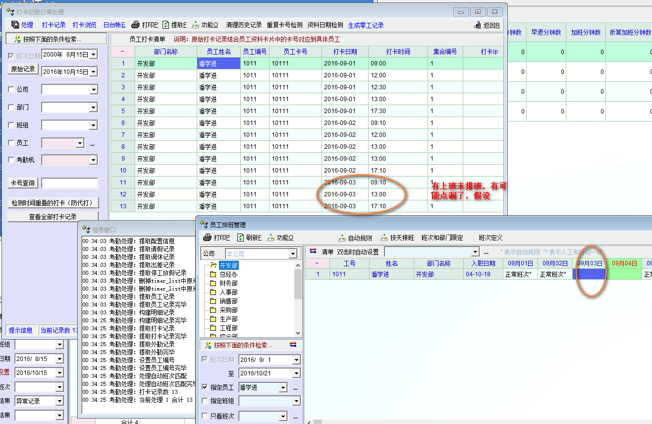 在考勤处理后,在日帐里将查询的一个月,所有自然天都显示出来 没有排班但有打卡的显示未知班次或者未排班,这样方便排错。 有请假的,有停工放假的,有出差的都相应显示,好像这个功能有了。