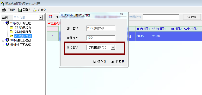 关于班次绑定能不能增加检索或是像员工资料一样与部门绑定