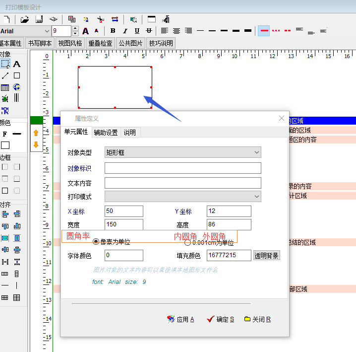 »打印模板,矩形框可否添加圆角功能