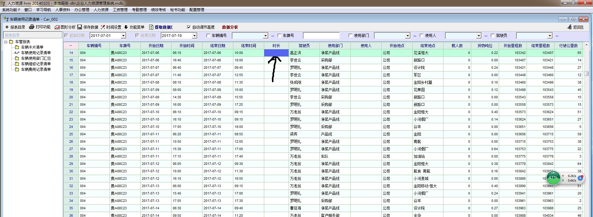 你好,我公司想对车辆管理中引入绩效考核。在派车时可以看到从出车到收车之间的工作时间。想在车辆使用记录清单中能体现:时长。