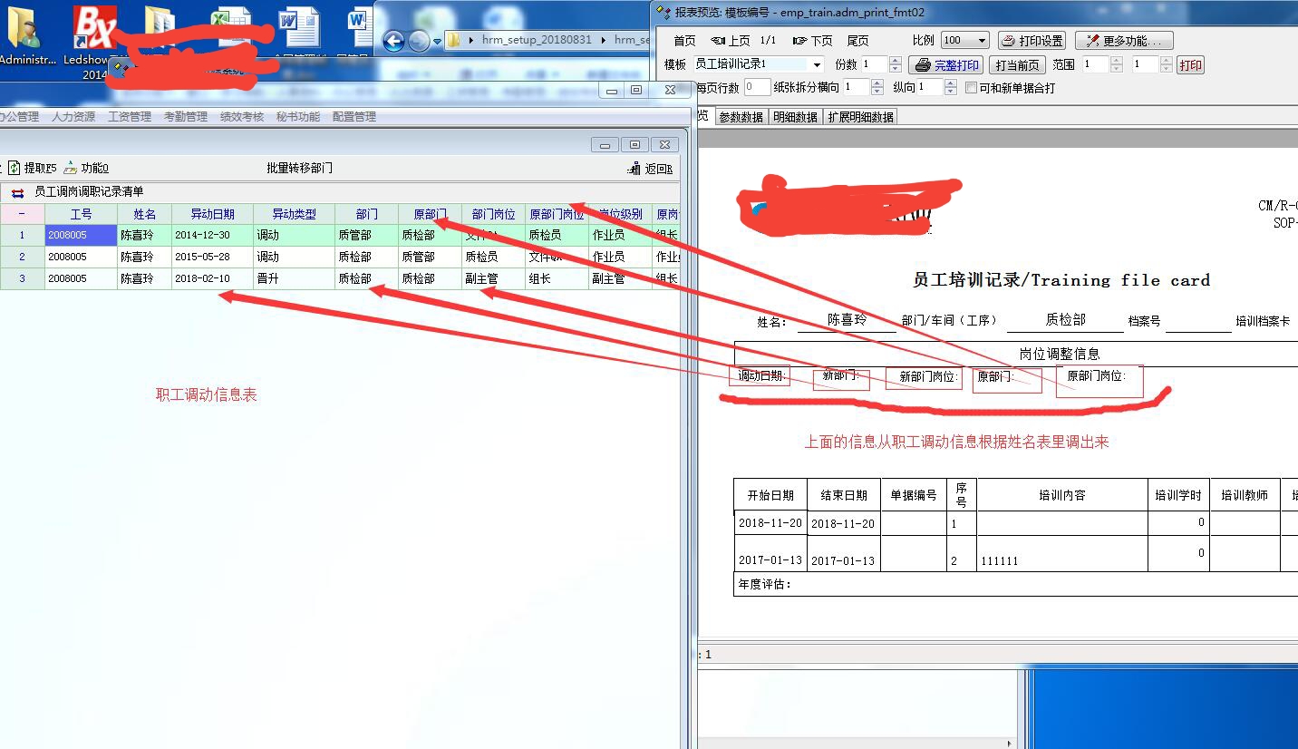 求助_打印个人培训记录表时,怎么样才能把个人的岗位调动信息也打印出来。_人力资产