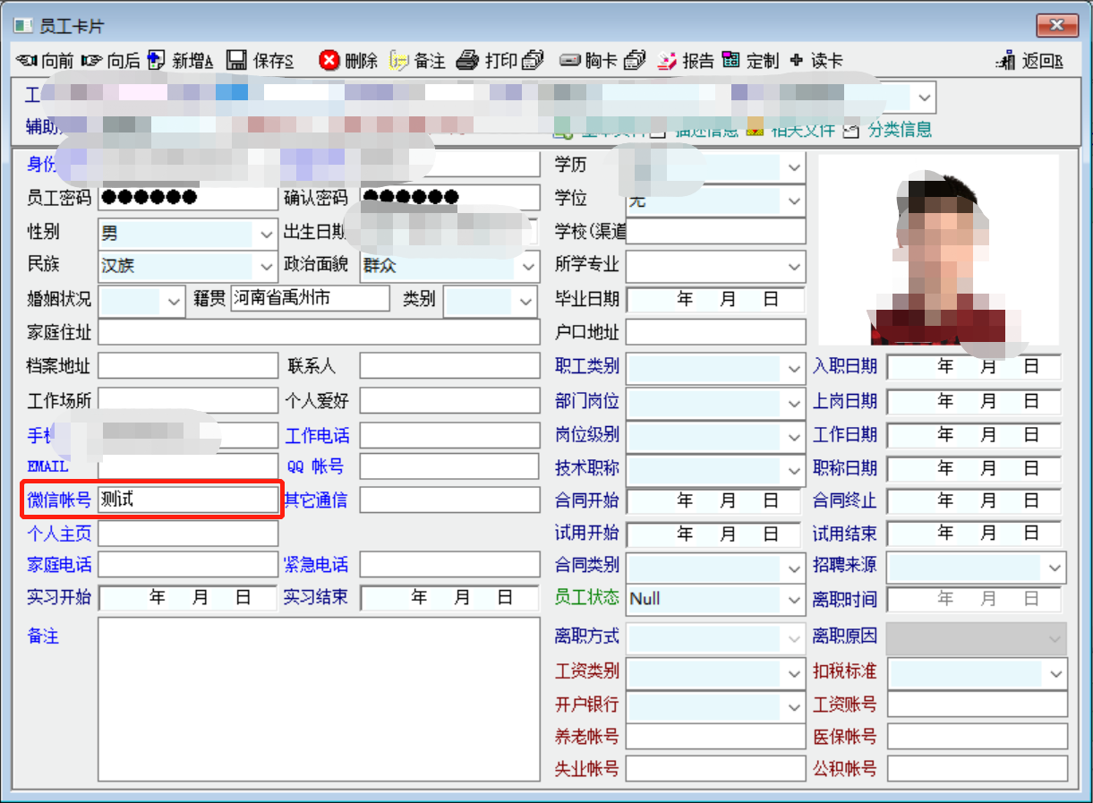 你好、老师,上次提出关于员工卡片 微信项目前已经修正;