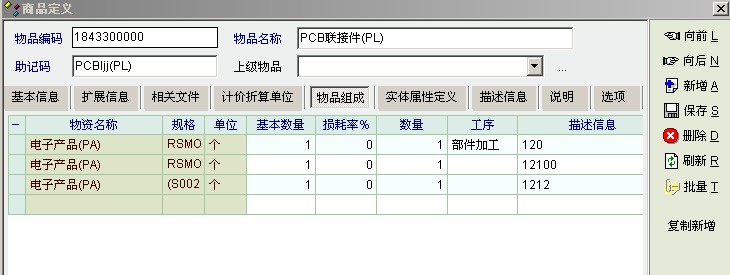 在产品的物资组成里录入了多个子产品的描述信息,但在生产单据里没有显示描述信息这一项。因为每一个父产品下子产品的描述信息都会有所不一样,盼及时处理。